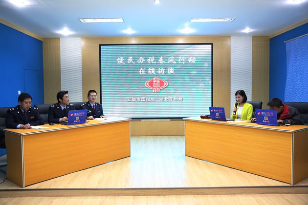 | | 宜昌市国税局在线访谈 搭平台 送“春风” | 4月25日上午9:00,宜昌市国税局与宜昌市政府门户网、三峡宜昌网联合举办了以“落实为民务实清廉,实施‘便民办税春风行动’”为主题的在线访谈活动。 | | 访谈时间:2014-04-25 09:00:39 | | 主题嘉宾:宜昌市国税局局长戴毅敏 | |